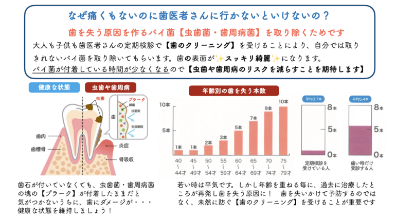 残念ながら 日本の歯医者さんに行く習慣は、【歯を削りにいく】習慣で利用しているため、治療する場所、歯を抜かれる場所、痛い思いをする場所というネガティブなイメージしかありません。
