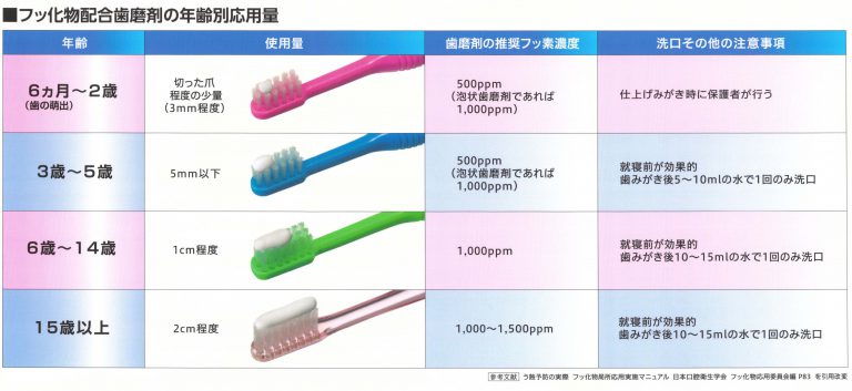 特に乳幼児から未就学の児童には保護者による十分な注意が必要です。また、フッ素の推奨濃度も年齢によって異なります。