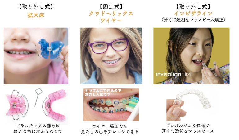 お子さんの歯並びを整えるには、拡大床以外にもいくつかの方法があります。それぞれの特徴を比較してみましょう。